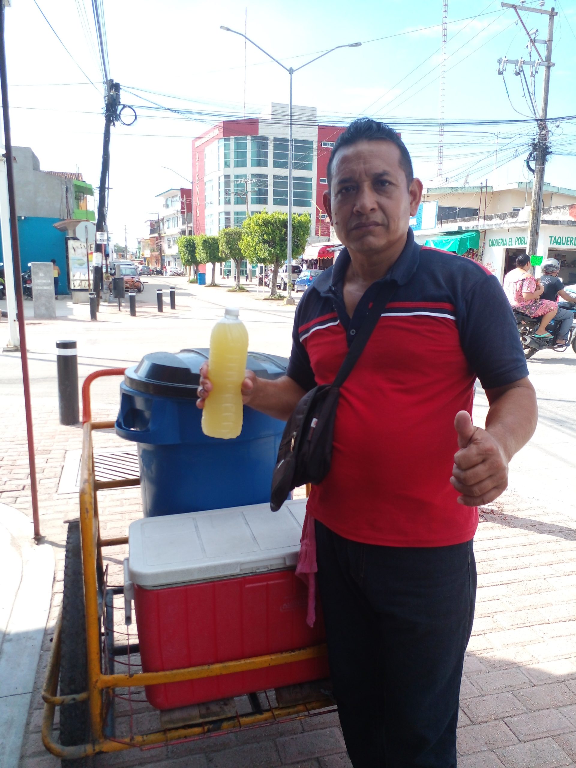 Al servicio de la población ofreciendo Aguas frescas de sabores y frutas de temporada con 2 Años en el comercio minorista por las Calles de Cunduacán