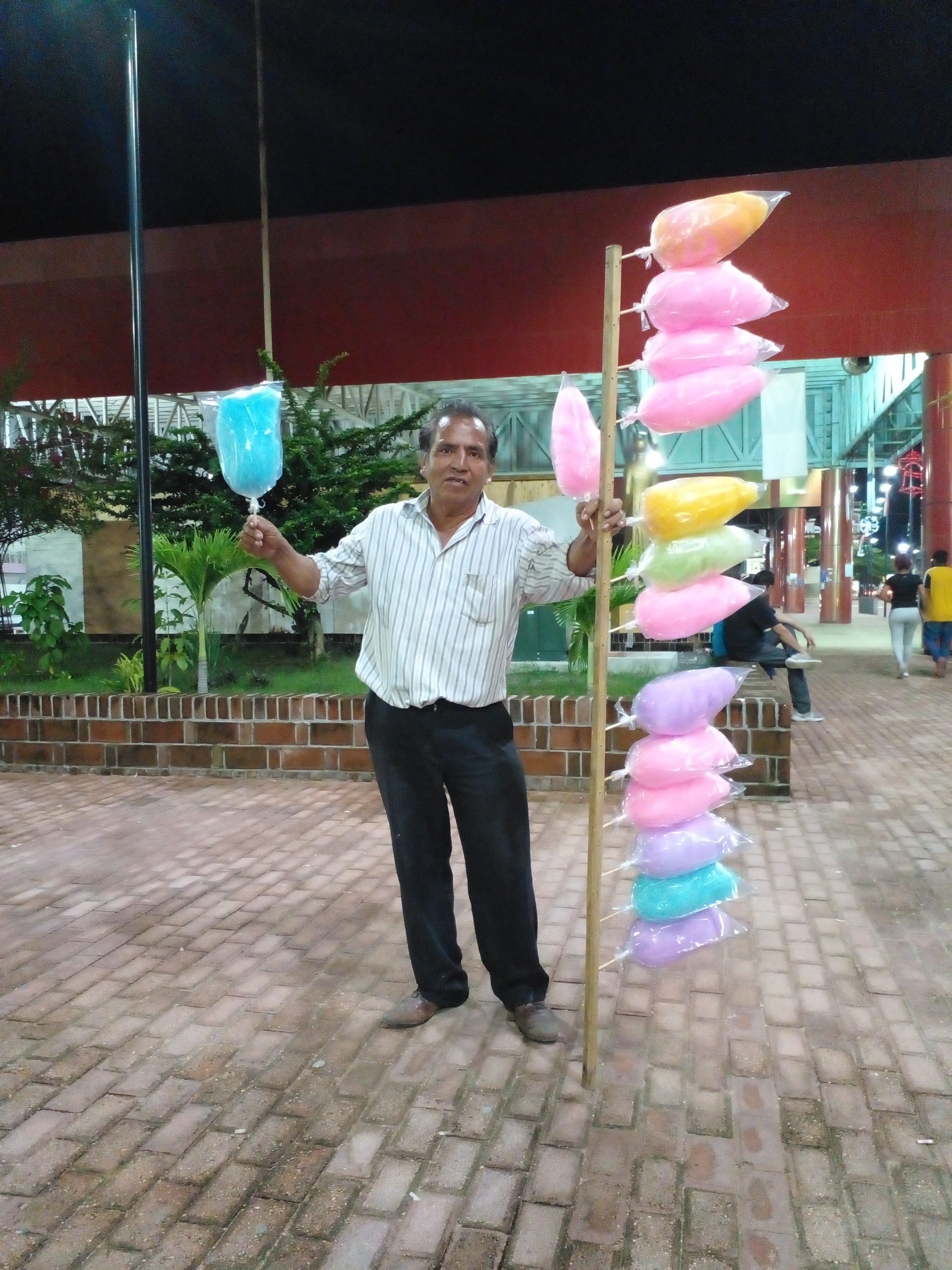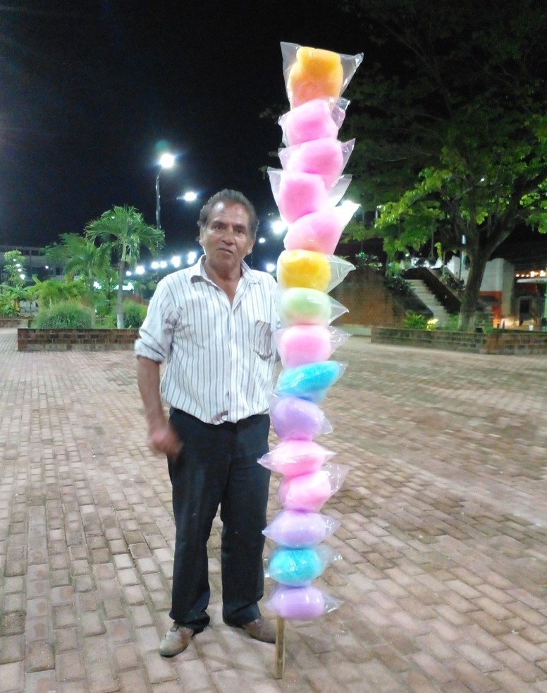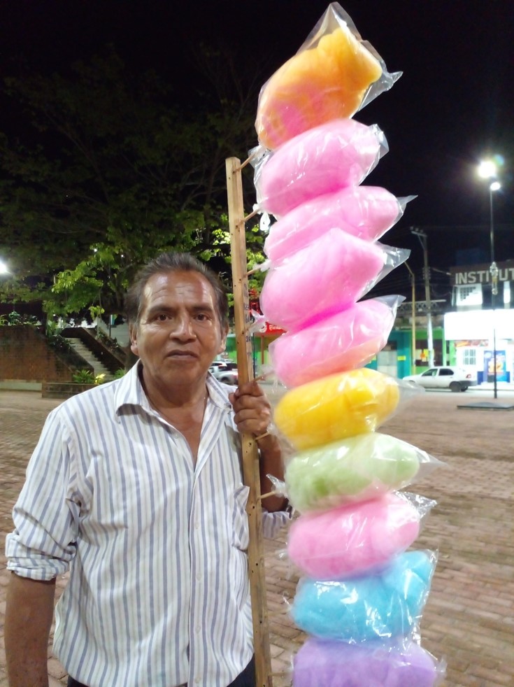 Al servicio de la población ofreciendo Algodones de azúcar diferentes sabores, Manzanas enchiladas, Chocoflanes y pastelitos con 28 Años en el comercio minorista en las calles de Cunduacán