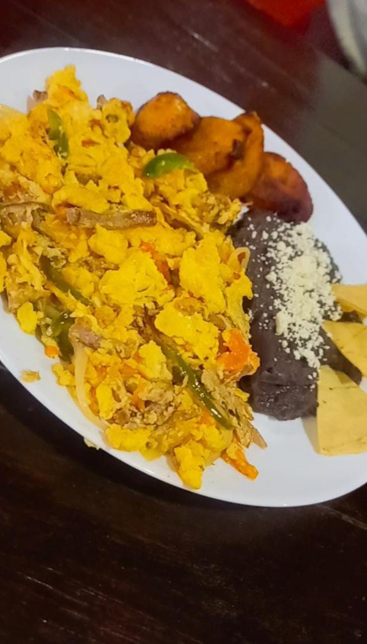 Carne deshebrada, tomate, cebolla pimiento morrón y toque especial de la casa
